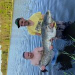 Druga połowa maja przyniosła piękną i ciepłą pogodę, co sprawiło, że w przyrodzie wszystko bujnie rośnie i rozkwita, cała natura to jedna wielka euforia. Nasze łowisko, ryby, i my wszyscy również jesteśmy w euforii, a to z powodu niesamowitych brań, które są każdego dnia na każdym zbiorniku. Jednakże dwa wyjątkowe brania na stawie nr 1 to już są prawdziwe rekordy i zasługują na opis i pochwały, a mianowicie; w niedzielę 21 maja po godz. 18:00 został złowiony gigantyczny sum o wadze 41,200 g i 180 cm długości! Hol tej ryby trwał 1,5 godziny, a żeby ją wyjąć trzeba było wejść do wody i ją dźwigać 🙂 Ta potężna ryba została złowiona przez kolegę Olka, któremu serdecznie gratulujemy! W uznaniu za złowienie takiej ryby ten sum otrzymał imię jego łowcy, czyli OLEK. Drugim rekordem jest wyjątkowy karp, który został wyjęty też 21 maja na ranem przez kolegę Kamila. Karp ma wagę 20 kg ! Ten dorodny prosiaczek skusił się na dużą kulkę, ale jaką, to chyba tylko p. Kamil wie 🙂 Wyjąć taką rybę to już nie lada sztuka, ale za to mnóstwo emocji i radości. Niestety nie otrzymaliśmy zdjęcia z wagą tego karpia, ale wierzymy na słowo. Ryby bezpiecznie wróciły do wody, rosną dalej i czekają na spotkanie z innymi wędkarzami. Bohaterom tych rekordów gorąco gratulujemy, nagrody zostały wręczone 🙂 Zapraszamy, kto wie co ten staw jeszcze skrywa ? ! Relacja z tych rekordowych brań.