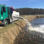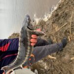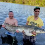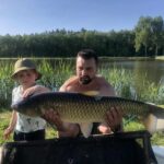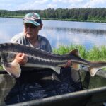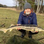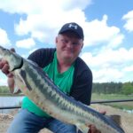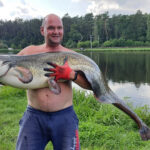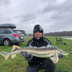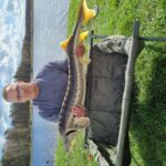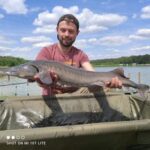 STAW NR  7 – JESIOTROWO -KARPIOWY jest to nowy, dość głęboki zbiornik położony od strony południowej, za stawem nr 2. Jego dno jest czyste, bez mułu, z lekkimi zagłębieniami. Dostęp do wędkowania jest z brzegu na jego całej linii, a groble są szerokie i zadbane. Do stawu są wpuszczone same spore, piękne i wymagające ryby, czyli: jesiotry od 4 -14 kg, karpie od 4 -15 kg, amury od 3 -5 kg oraz pływają okonie powyżej  0,5 kg. Na ten zbiornik zapraszamy wędkarzy, którzy są odpowiednio przygotowani i wiedzą jak fachowo się obchodzić z jesiotrami, tu obowiązują haczyki bezzadziorowe, dobre zestawy, szeroki podbierak, i oczywiście mata lub kołyska, umiejętne wyciąganie takiej ryby, jej bezpieczne trzymanie, szybkie zdjęcie i powolne wpuszczanie do wody to podstawa. Złowienie sporego jesiotra to nie lada wyczyn! Jej spryt i walka przy holowaniu to wielkie emocje!  Z tego zbiornika nie sprzedajemy ryb! Prosimy o fachowe i bezpieczne obchodzenie się z tymi pięknymi rybami. Dane:  pow. 3 ha, gł. od 2,5 do 3 m, na 35 stanowisk.
