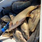 Drodzy, w dniach 16-17 marca br. dorybiliśmy bardzo intensywnie wszystkie nasze stawy! 7 ton pięknych i energicznych karpi o wadze od 5 do 8 kg. zostało proporcjonalnie rozprowadzonych do każdego stawu, w następujących ilościach: staw nr 1- 1300 kg, staw nr 2- 1200 kg, staw nr 7- 1200 i staw nr 4- 3300 kg ! Było się czym rządzić ☺️ 17 marca dojechały również karpie trochę mniejsze (śr. waga 2 kg), w ilości 1800 kg., i trafiły do stawu nr 2 💪  Również magazynki przy barze zostały dorybione karpiami w ilości ok. 900 kg., a były to ryby, które nie zostały sprzedane na święta, wiec ponownie trafiły do wody. Łącznie, tej wiosny wpuściliśmy blisko 10 ton ryb🐠🐟 Zabiegamy o to, aby nasze stawy były dobrze zarybione, aby osoby, które tu przyjeżdżają, nawet z mniejszymi umiejętnościami nie wyjeżdżały o „kiju” 🎣, a Wy, którzy już znacie to miejsce abyście chętnie tu wracali 🙂  W nowym sezonie wędkarskim wszystkim życzymy świetnych brań i nowych rekordów nad wodą 🏆! Łowisko jest otwarte codziennie od 6;00 do 20;00, można te zostać na nocki. Bar również działa codziennie ( oprócz poniedziałków) od 10:00 do 18:00. Serdecznie zapraszamy !