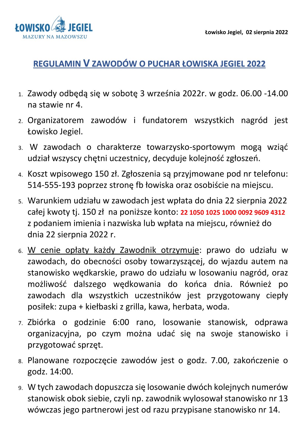 REGULAMIN ZAWODÓW 03.09.2022