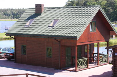 DOMEK LEŚNIKA to nowy, zbudowany z drewna budynek stojący na terenie siedliska blisko stawu nr 2. Na dole znajduje się obszerny salon z kominkiem, rozkładanym narożnikiem, aneksem kuchennym, łazienką, tarasem. Natomiast na górze mieszczą się 3 sypialnie dla 8 osób. Jedna sypialnia jest z łóżkiem małżeńskim, a w dwóch kolejnych stoją po 3 jednoosobowe łóżka. W całym budynku zmieści się maksymalnie 10 osób. Cały domek jest bardzo ładnie wykończony i wyposażony, wszystko jest nowe i pachnie drewnem. Zachęcamy do obejrzenia zdjęć i do rezerwacji.